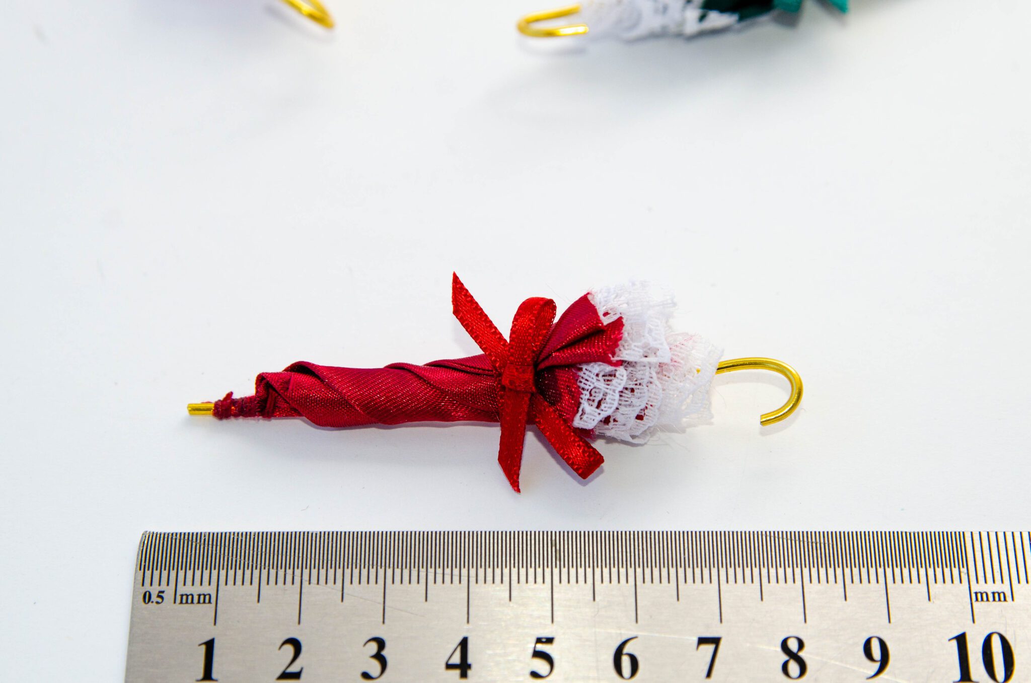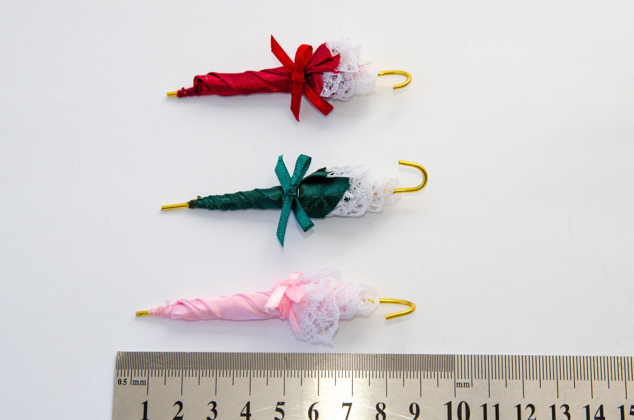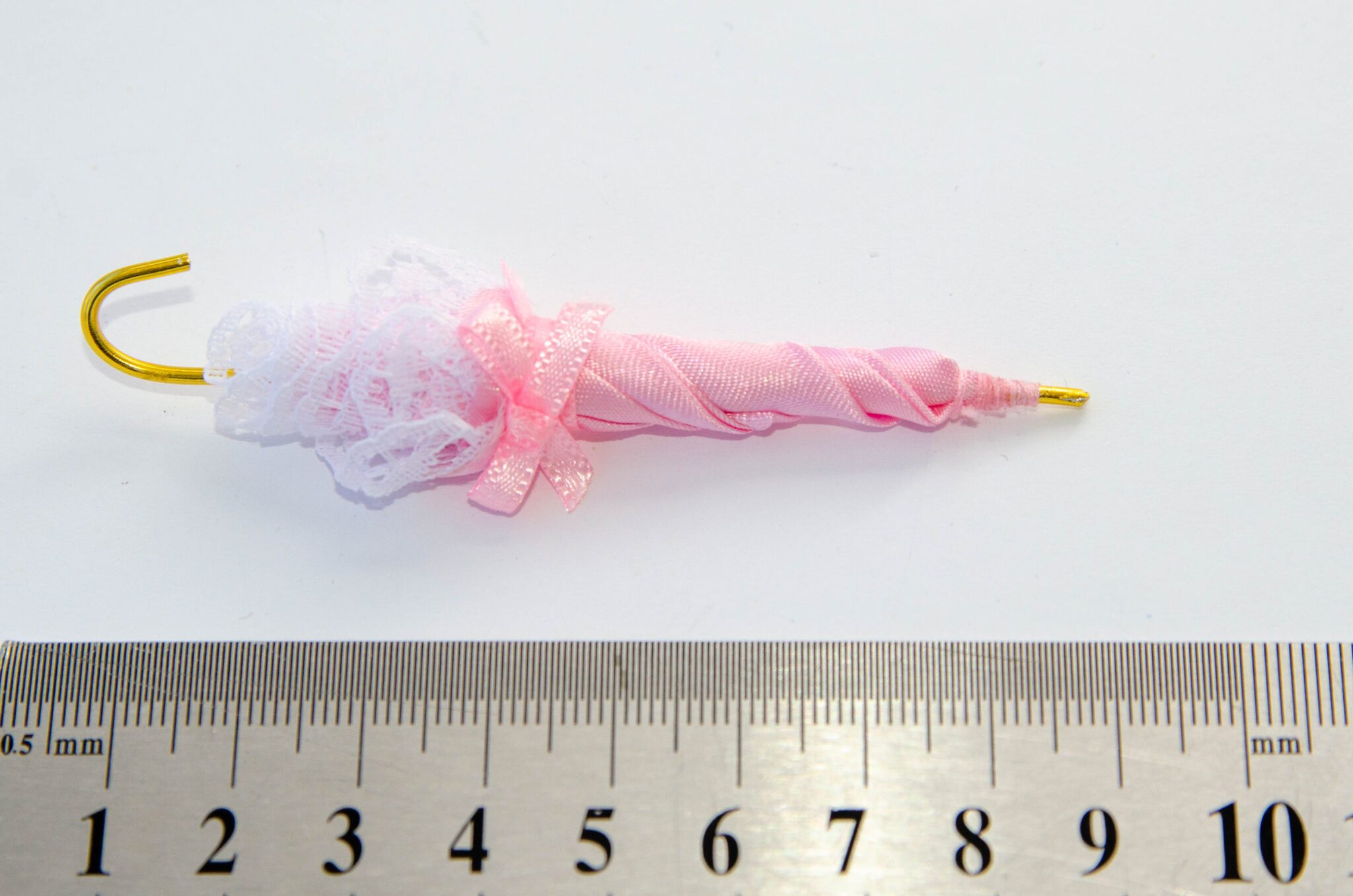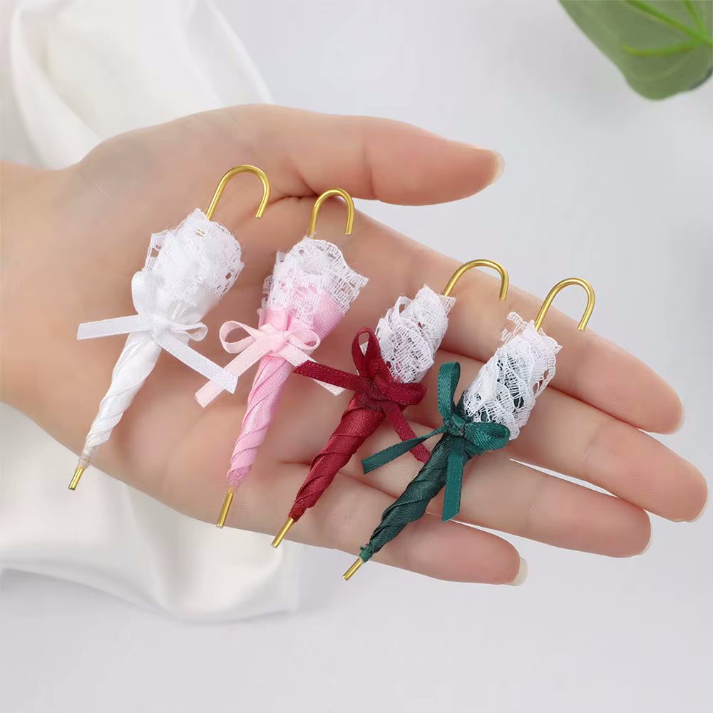 Парасолька в масштабі 1:12 з бантом та мереживом для декорації.