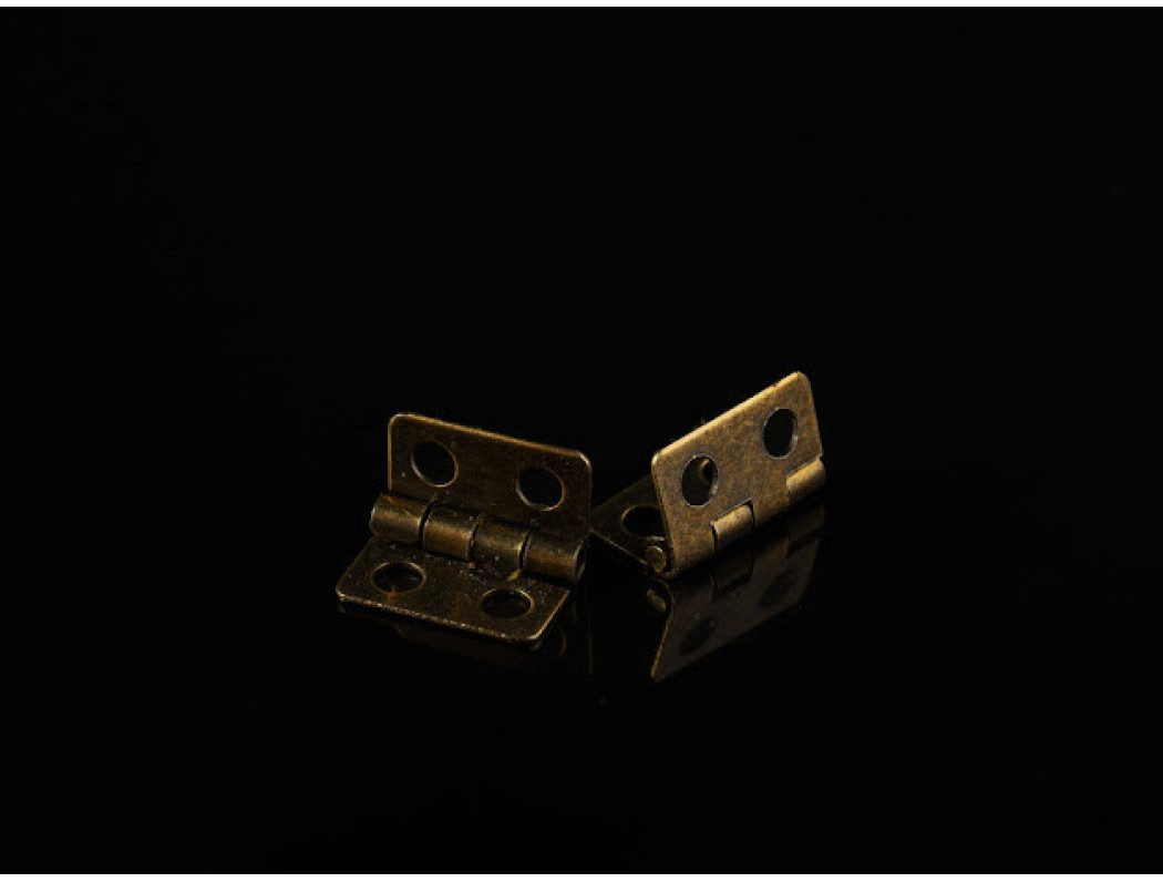 Петля декоративна 12×13 мм у кольорі «стара латунь» — мініатюрна фурнітура для шкатулок, коробочок та меблів ручної роботи.