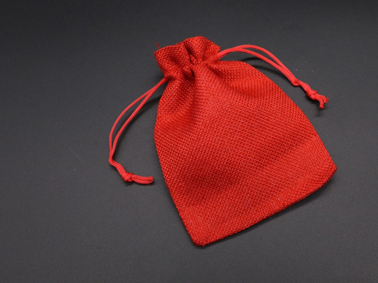 Подарунковий мішечок з мішковини на затяжках. Колір червоний. 10х14см